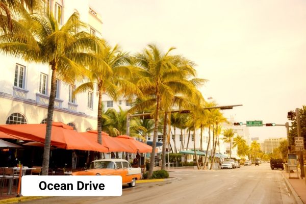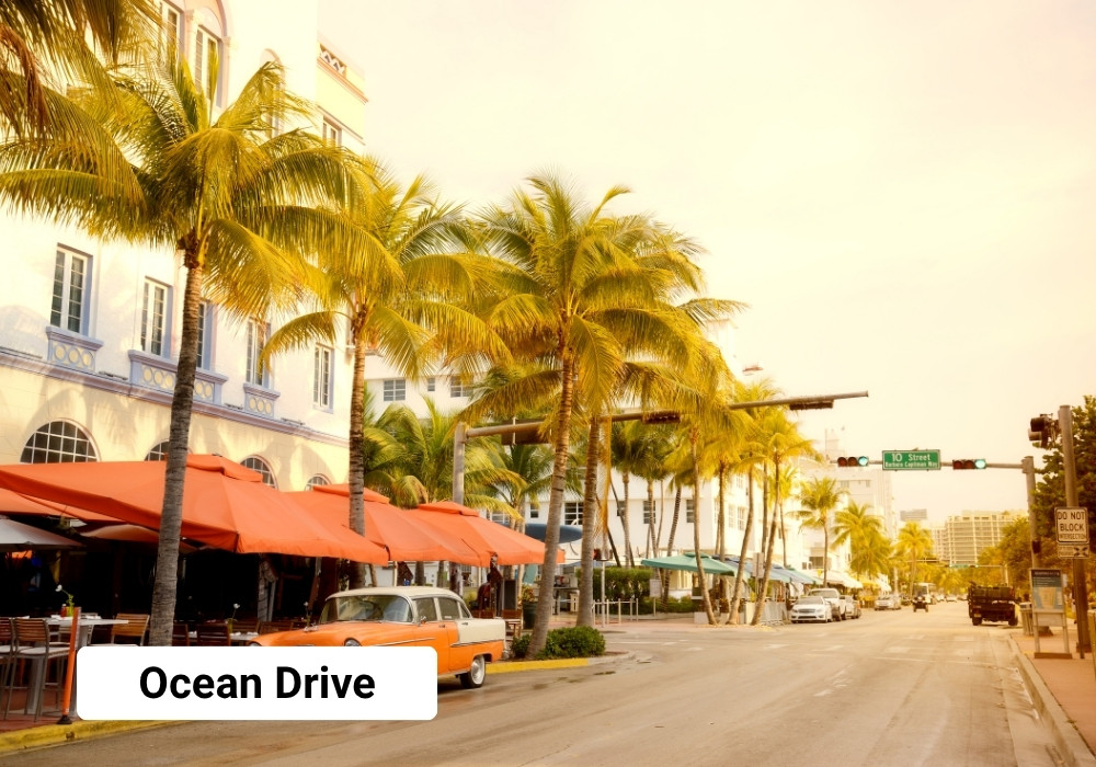 Najsłynniejsza, a na pewno najbardziej malownicza ulica Miami to prawdziwa uczta dla oczu. Piękne budynki wybudowane w stylu art deco, barwne neony i pastelowe kolory elewacji sprawiają, że całość robi wrażenie nieco bajkowej i sielankowej okolicy, jak sprzed wielu lat. Warto wiedzieć, że Ocean Drive stanowi największe skupisko budowli art deco na całym świecie, co czyni ją zupełnie wyjątkową. Unikalności dodaje jej również fakt, że klasyczny styl został w tym przypadku uzupełniony kolorowymi malowidłami, które komponują się z otoczeniem. Na ścianach budynków znajdziemy zarówno barwne papugi, palmy, jak i słoneczne plaże. Jednym słowem wszystko, co kojarzy się z radosnym Miami. Mnogość restauracji, butików, knajp i kawiarni przyciąga turystów z całego świata.