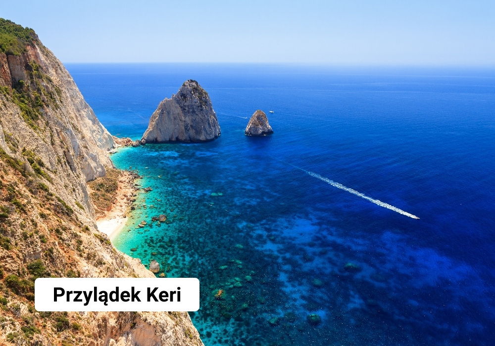 Kolejnym punktem widokowym wartym uwagi jest położony jest w południowo-zachodniej części wyspy Przylądek Keri. Miejsce słynie z imponujących klifów spadających prosto do turkusowego Morza Jońskiego. Zachody słońca widziane z tego miejsca są uważane za jedne z najpiękniejszych na całej Zakynthos. Z punktu widokowego w Keri można podziwiać charakterystyczne skały Mizithres — dwa białe, wapienne „stożki” wyrastające z morza. Jest to ikoniczny widok dla Zakynthos.